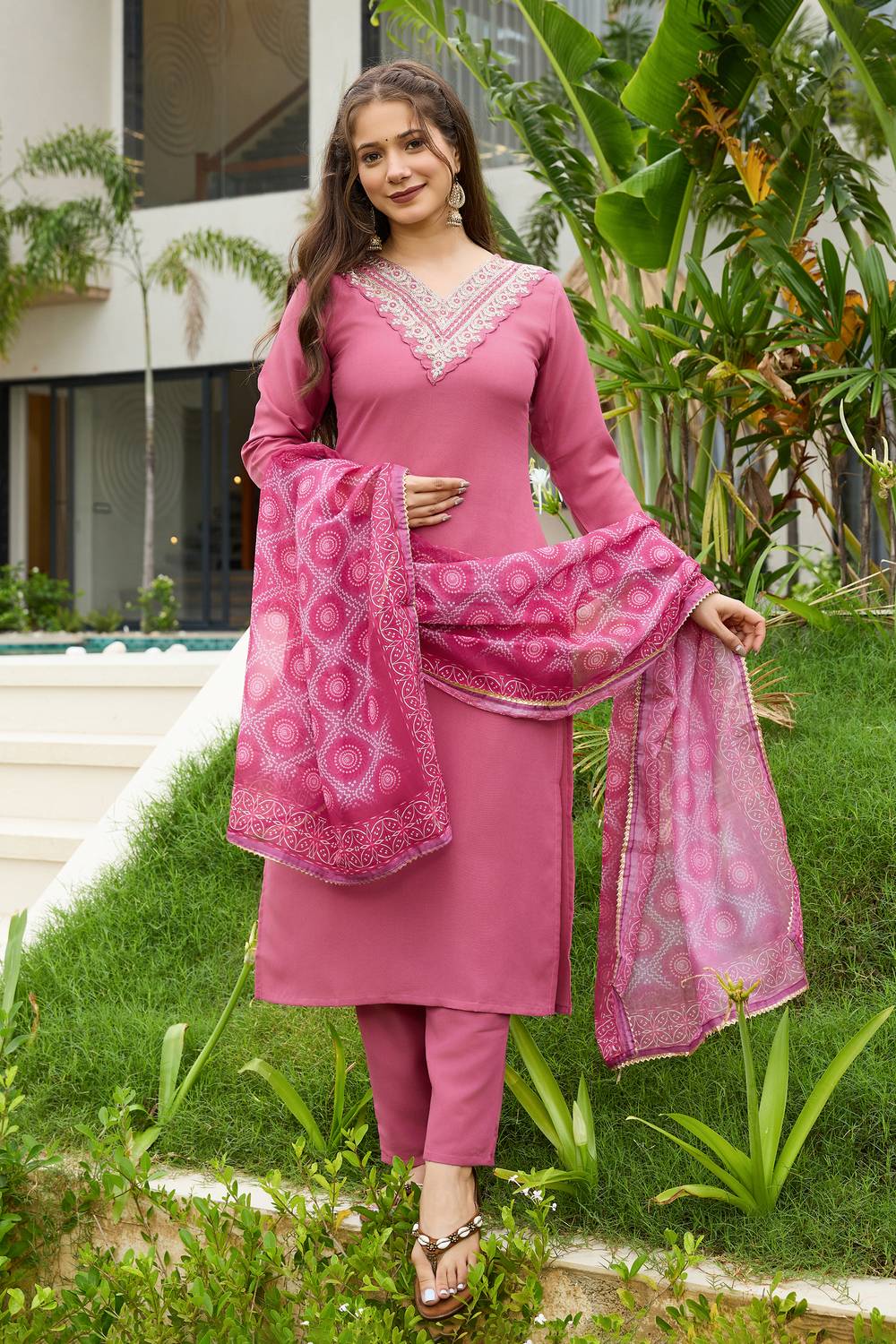 Step into effortless style with our Kurti Pant Set crafted for the modern woman who cherishes tradition. Made from soft Rayon it keeps you comfortable all day long. The Solid design lends a touch of sophistication to your outfit. Perfect for Casual this Kurti Pant Set is a must-have for versatile styling options