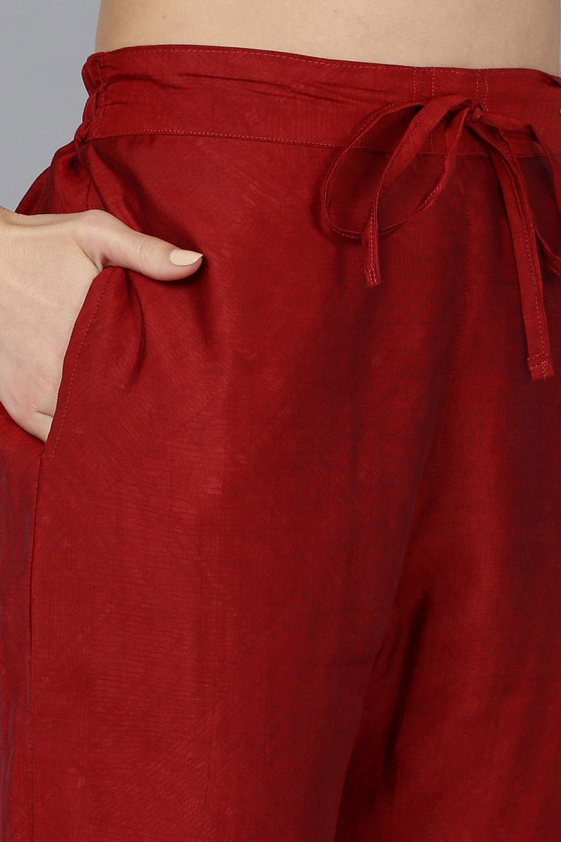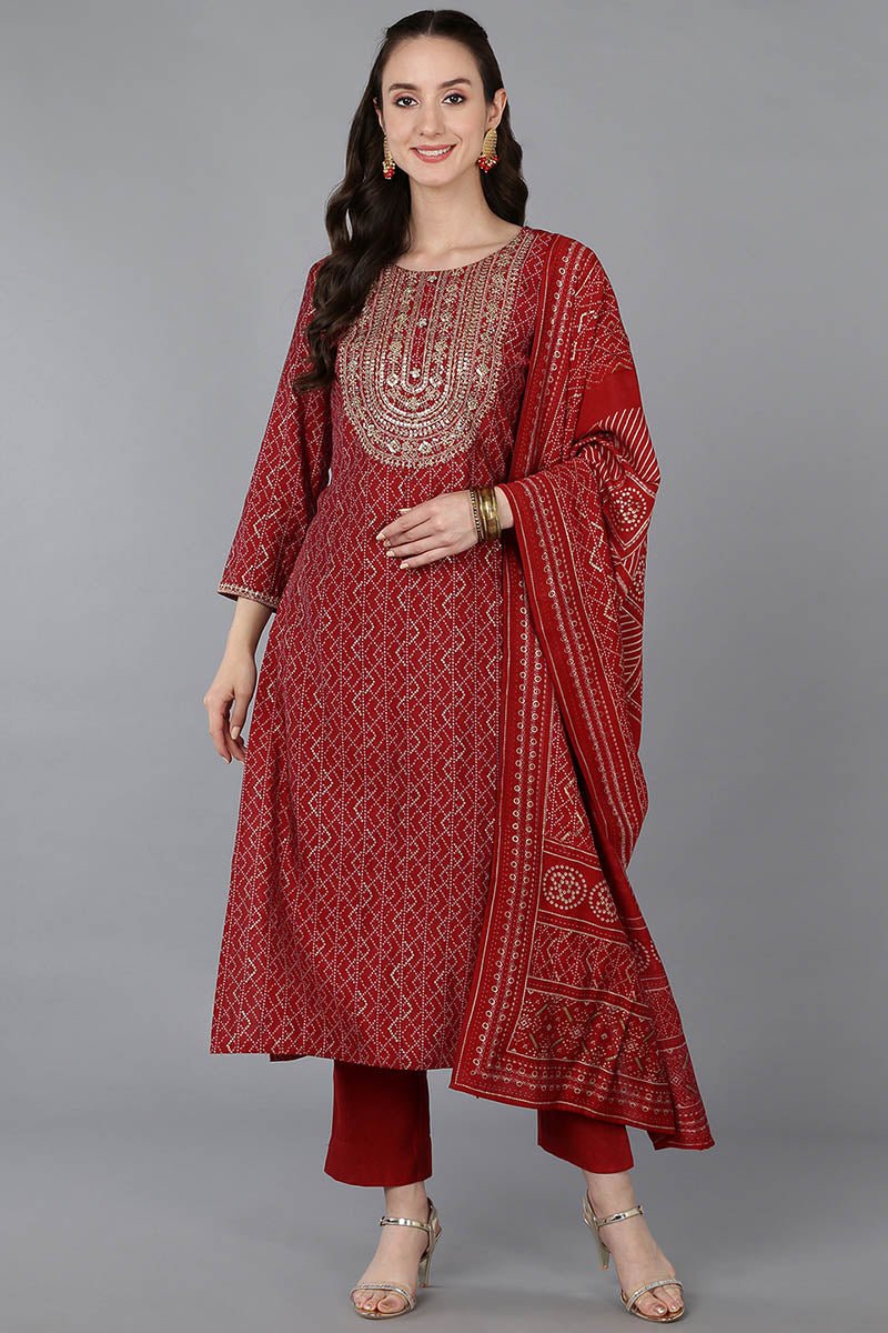 Red Silk Blend Bandhani Print Embroidered Straight Suit Set