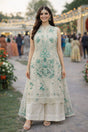Sea Green Floral Embroidered Chiffon Kurti Palazzo Set (ACA6966)