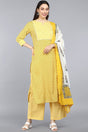 Yellow Cotton Straight Kurti Pant With Dupatta