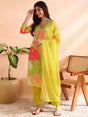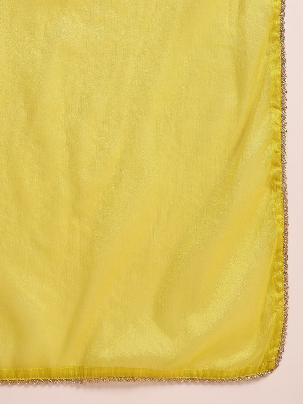 Yellow Rayon Blend Floral Printed Straight Kurti Pants With Dupatta