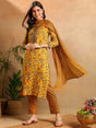 Yellow Rayon Blend Floral Printed Straight Kurti Pants With Dupatta