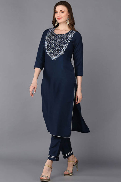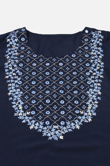 Blue Rayon Floral Print Mandarin Collar Kurti