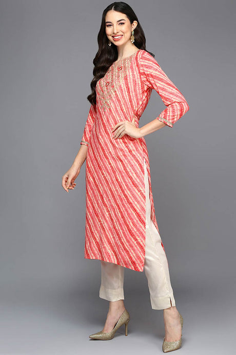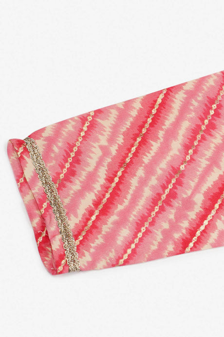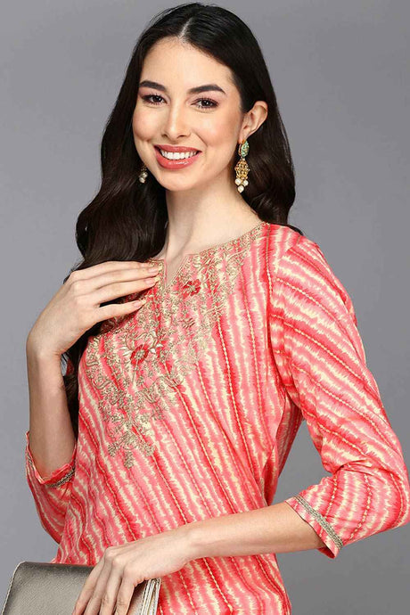 Pink Rayon Bandhani Keyhole Neck Kurti