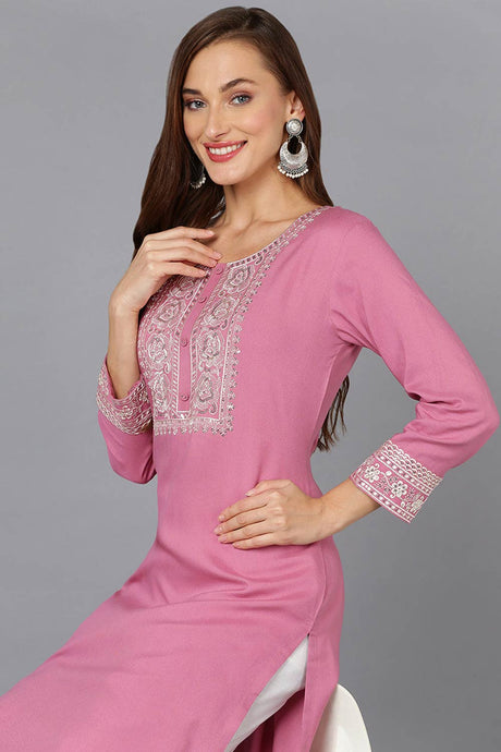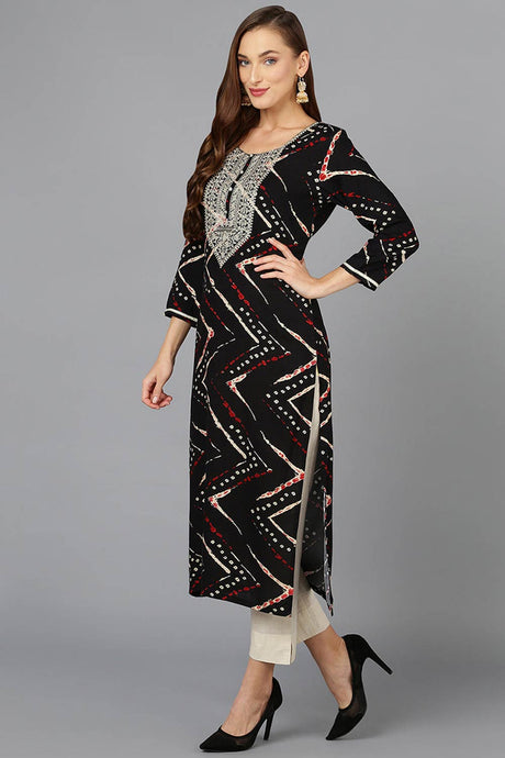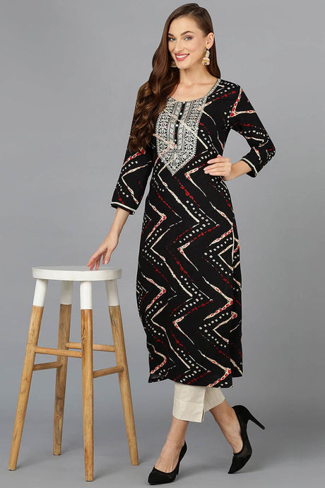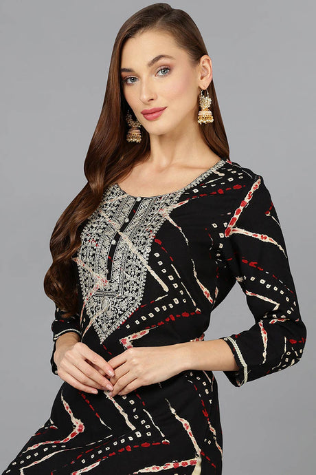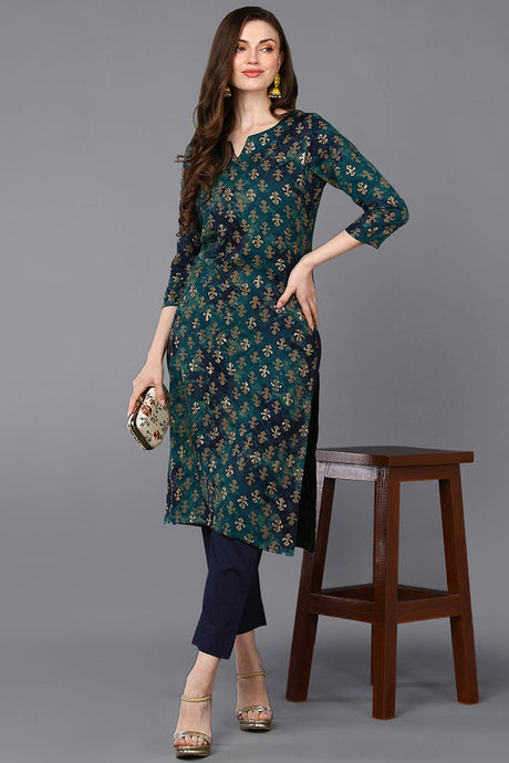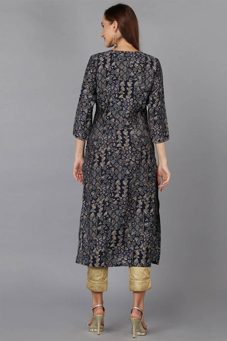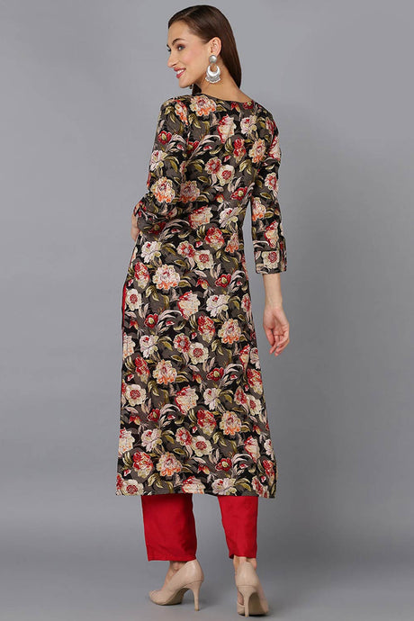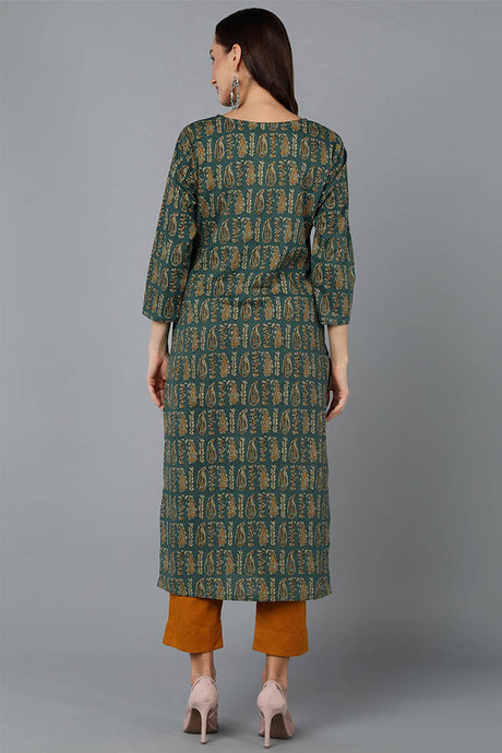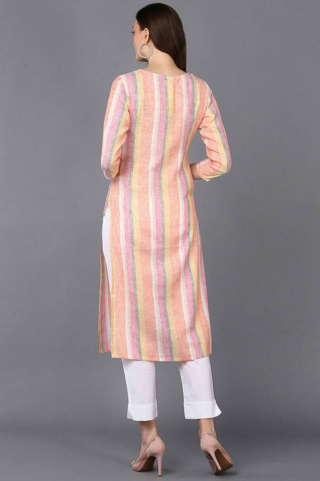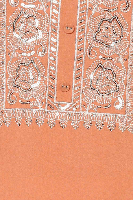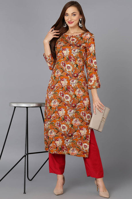 Orange Cotton Floral Print Keyhole Neck Kurti