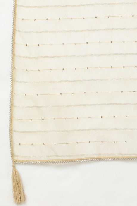 Off White Silk Blend Floral Straight Kurti Pant With Dupatta
