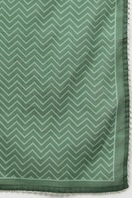 Green Silk Blend Embroidered Kurti Pant With Dupatta