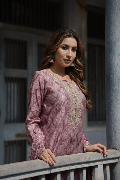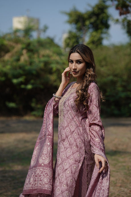 Mauve Silk Blend Ombre Straight Kurti Pant Set