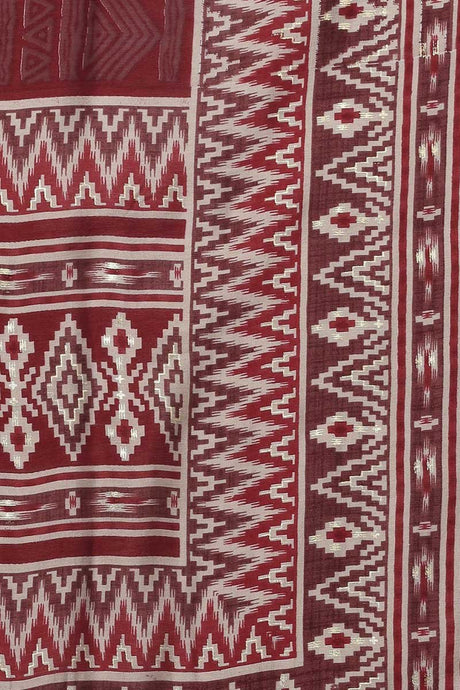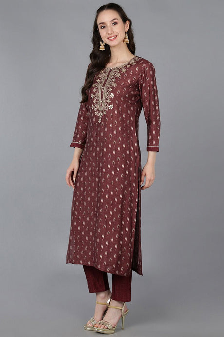 Maroon Silk Blend Geometric Straight Kurti Pant Set
