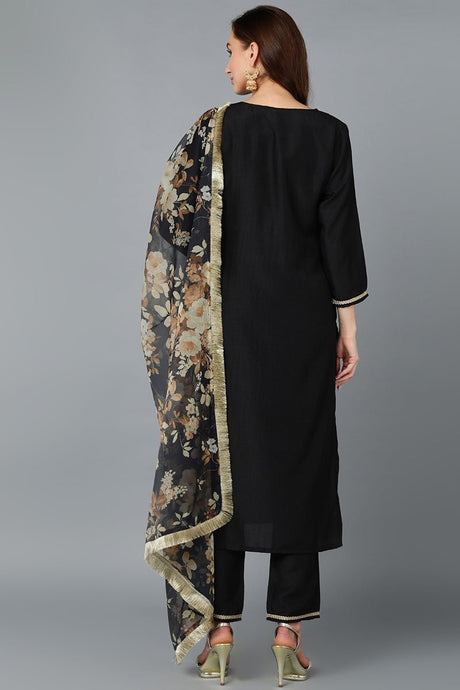 Black Silk Blend Yoke Design Kurti Pant With Dupatta