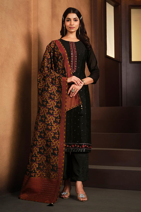Black Floral Embroidered Silk Kurti Pant Set