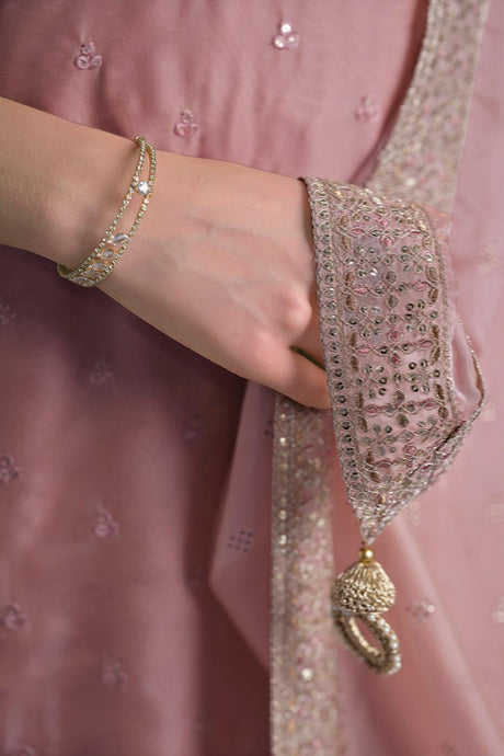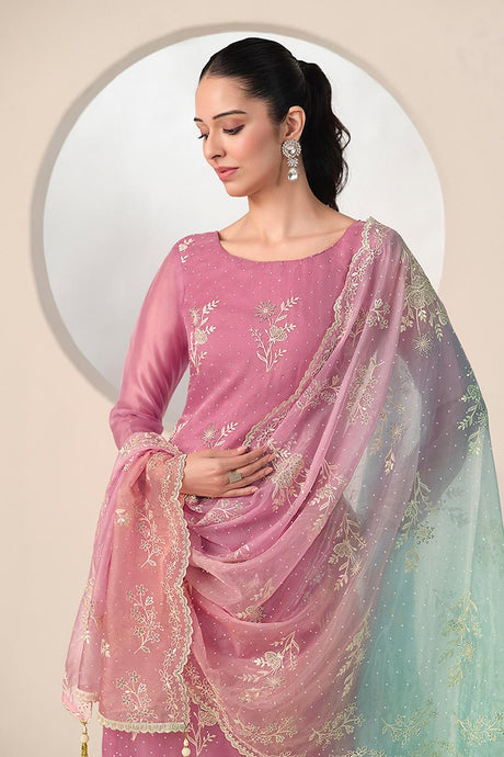 Pink Floral Embroidered Organza Kurti Pant Set