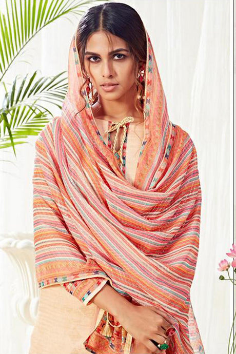 Peach Printed Cotton Kurti Pant Set