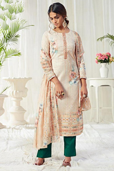 Cream Printed Cotton Kurti Pant Set