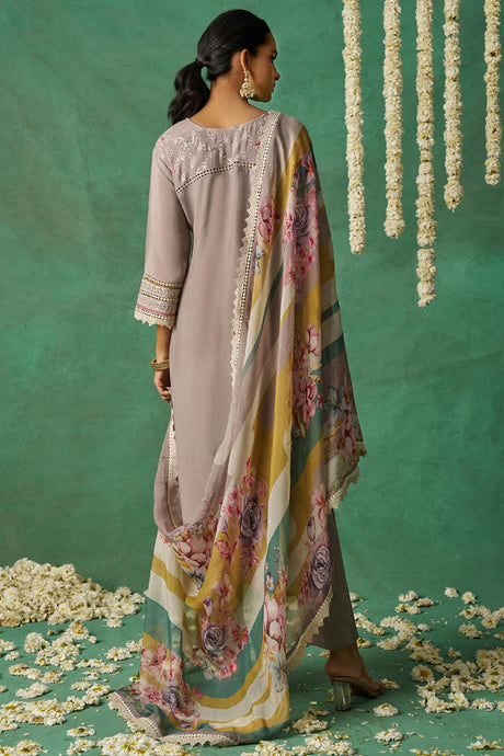 Lavender Floral Embroidered Silk Kurti Pant Set