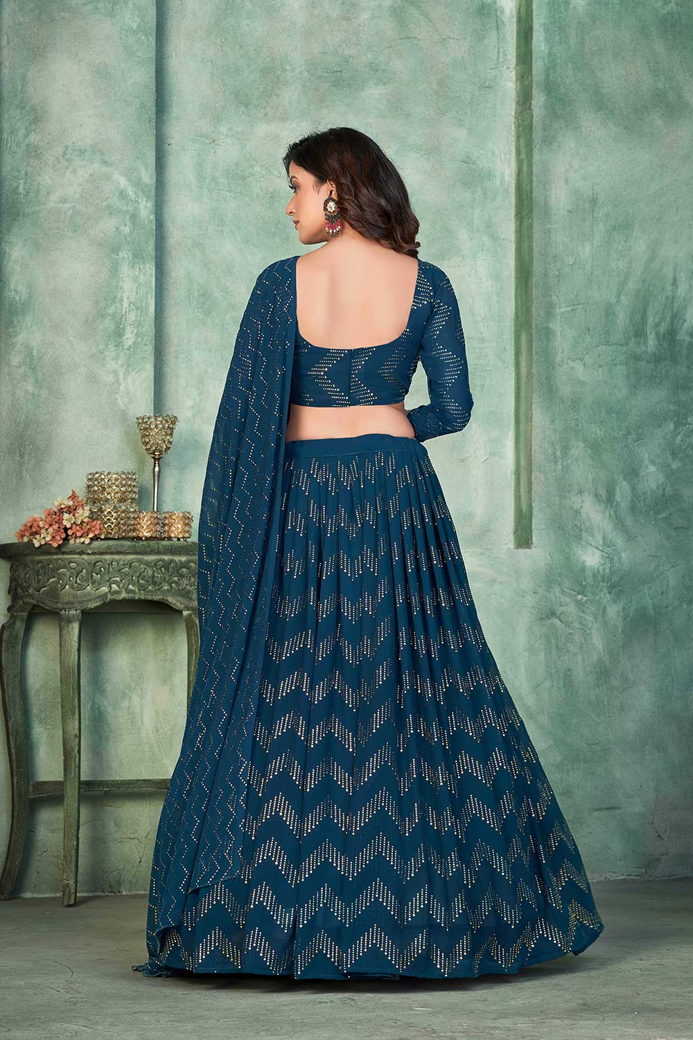 Aque Blue Georgette Embroidery Round Neck Lehenga