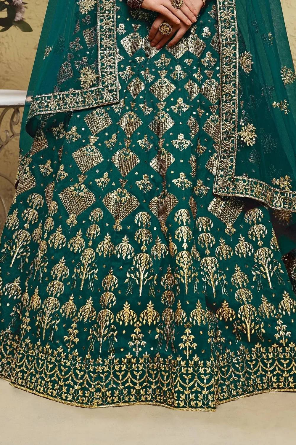 Green Sequin With Embroidered Silk Lehenga