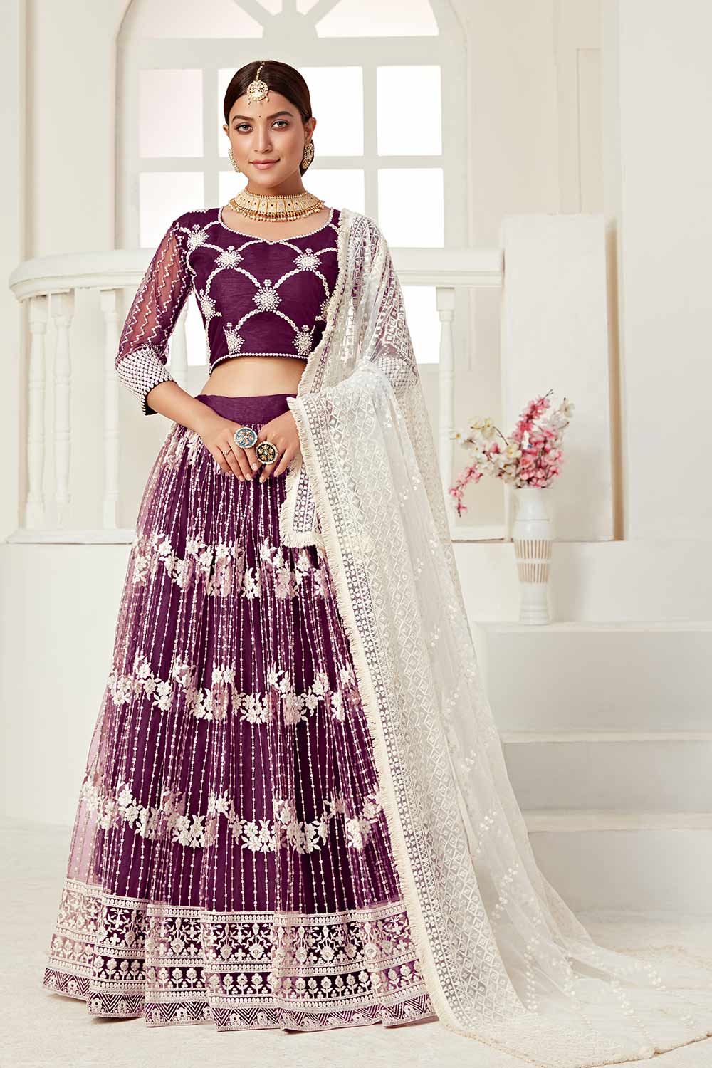 - Lehenga Color: Wine