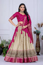 Pink Floral Embroidered Lichi Fabric With Jacquard Border Lehenga