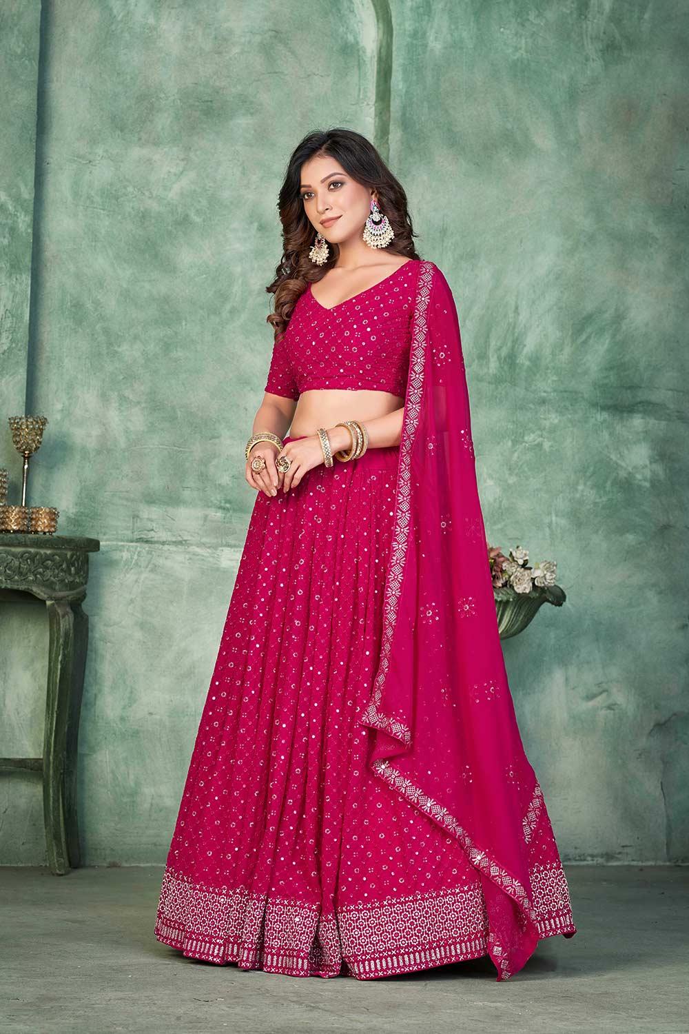 Delicate Pink Georgette Embroidery Round Neck Lehenga with exquisite embroidery on the round neck top, perfect for adding a touch of elegance to any special occasion.