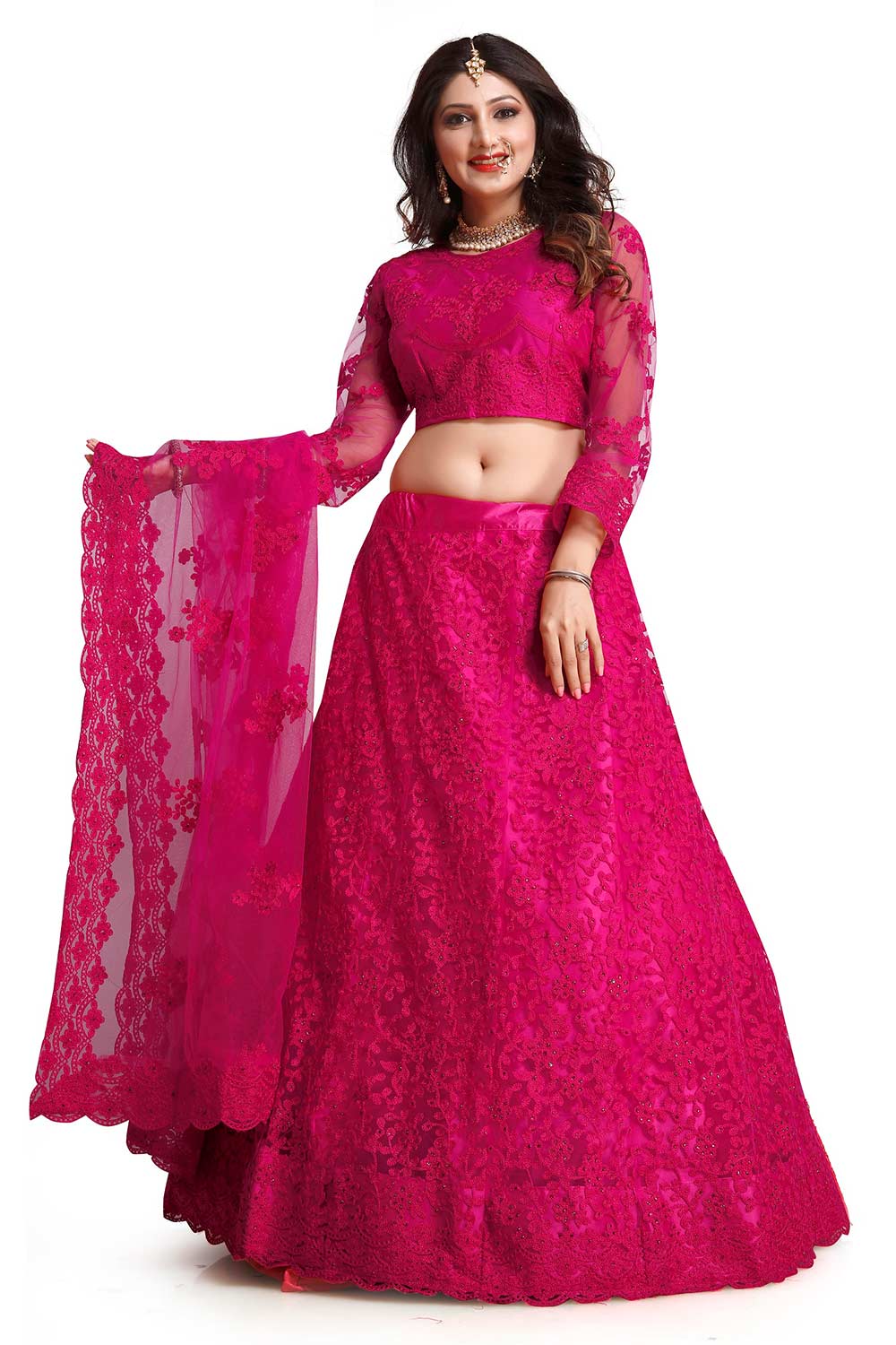 Pink Net Embroidered Lehenga Choli