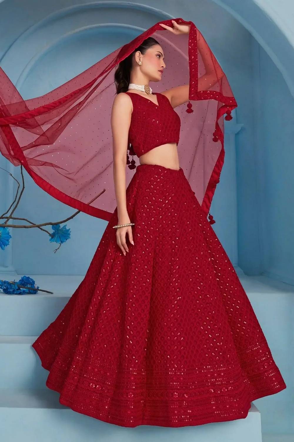 Step into the spotlight with our Lehenga a dazzling creation designed to make your special moments unforgettable. Crafted from premium Georgette this lehenga offers a perfect combination of elegance and ease, keeping you graceful all day long. The exquisite Sequin With Embroidered makes this lehenga a masterpiece of traditional craftsmanship. Whether it’s Sangeet,Mehendi,Party or a grand celebration, this lehenga is the perfect choice to make a statement. Pair it with an ornate choker, a matching dupatta, and embellished stilettos to complete the regal look. Add a sleek bun or cascading curls for added glamour. Make every moment magical with the timeless allure of Lehenga