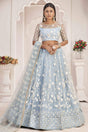 Sky Blue Butterfly Net Cotton Thread Sequin Embroidery Lehenga Set