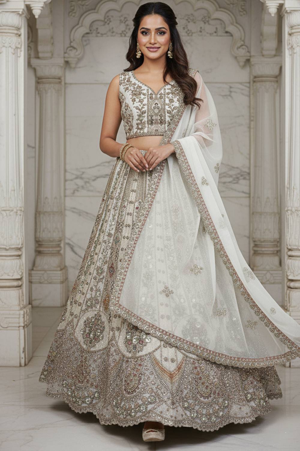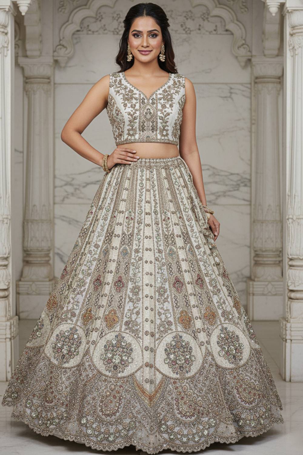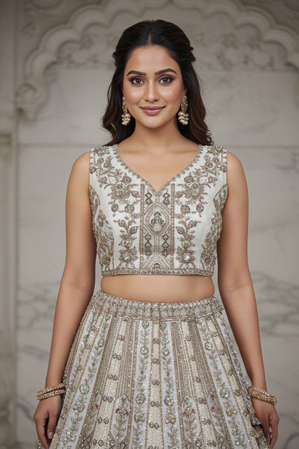 Step into the spotlight with our Lehenga a dazzling creation designed to make your special moments unforgettable. Crafted from premium Organza this lehenga offers a perfect combination of elegance and ease, keeping you graceful all day long. The exquisite Sequin with Stone Embossed makes this lehenga a masterpiece of traditional craftsmanship. Whether it’s Wedding, Reception or a grand celebration, this lehenga is the perfect choice to make a statement. Pair it with an ornate choker, a matching dupatta, and embellished stilettos to complete the regal look. Add a sleek bun or cascading curls for added glamour. Make every moment magical with the timeless allure of Lehenga