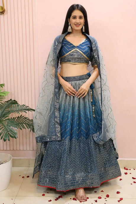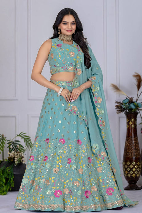 Turquoise Sequin with Embroidered Georgette Lehenga