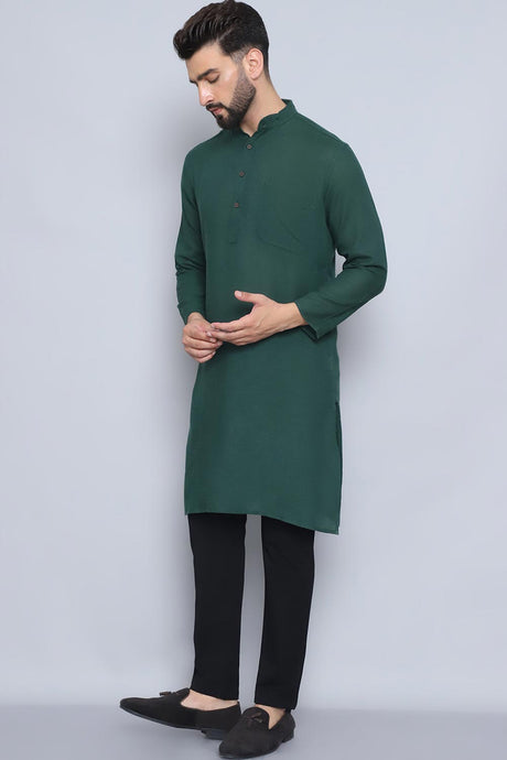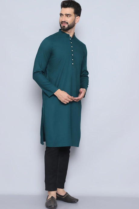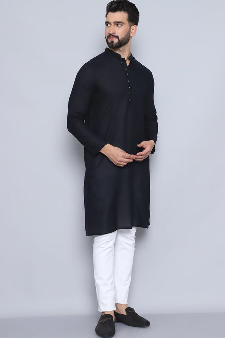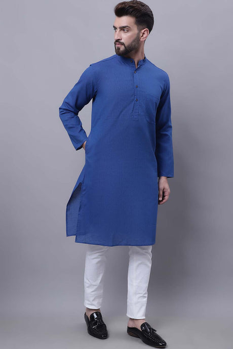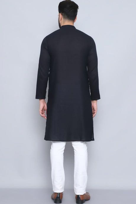 Men's Cotton Art Silk Solid Kurta in Navy Blue - 40 / Blue