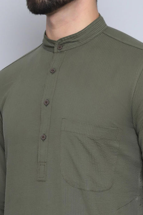 Men's Mint Green Silk Blend Ethnic Motif Woven Design Short Kurta (Size: 38)
