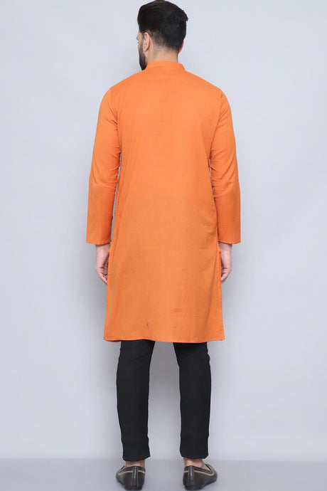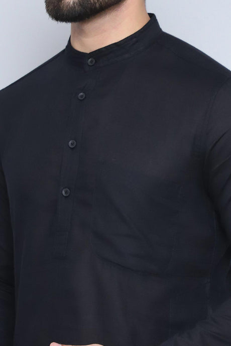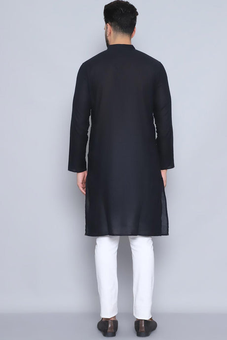 Men's Black Cotton Thread Work Embroidered Straight Kurta Top (Size: XS)