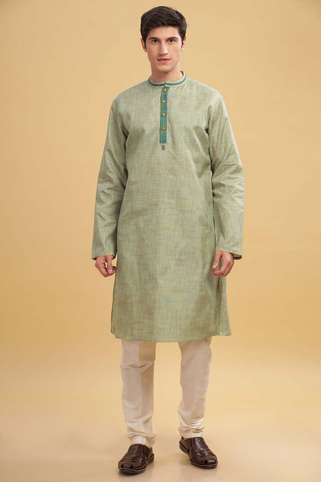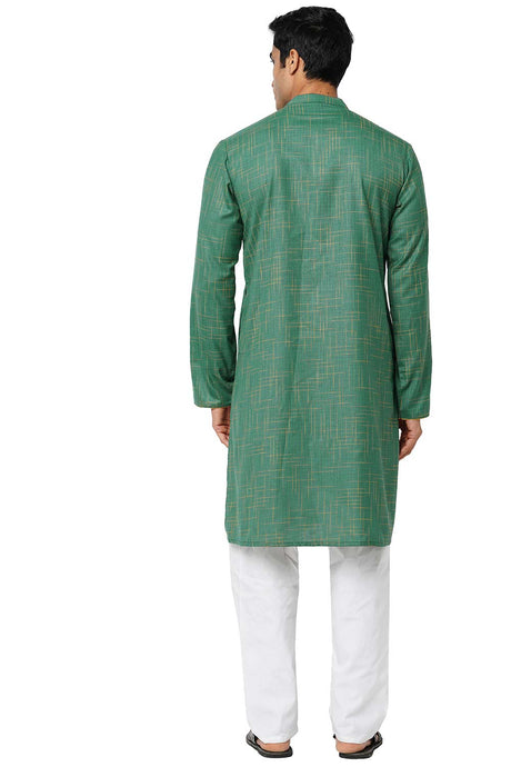 Men's Green Poly Cotton Mandarin Collar Long Kurta