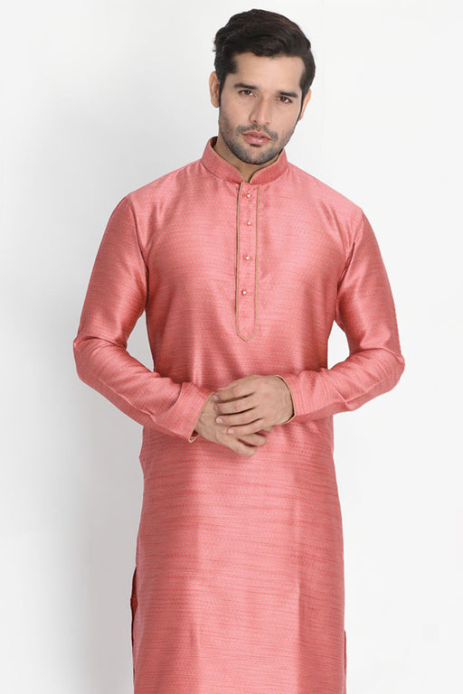Men's Cotton Art Silk Solid Kurta In Light Blue
