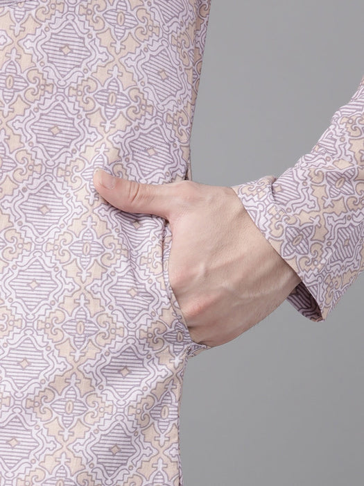 Men's Peach Cotton Geometric Printed Straight Kurta Top