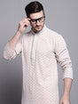 Men's Peach Sequin Embroidered Cotton Kurta