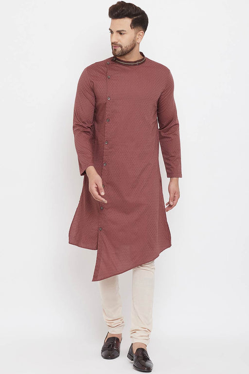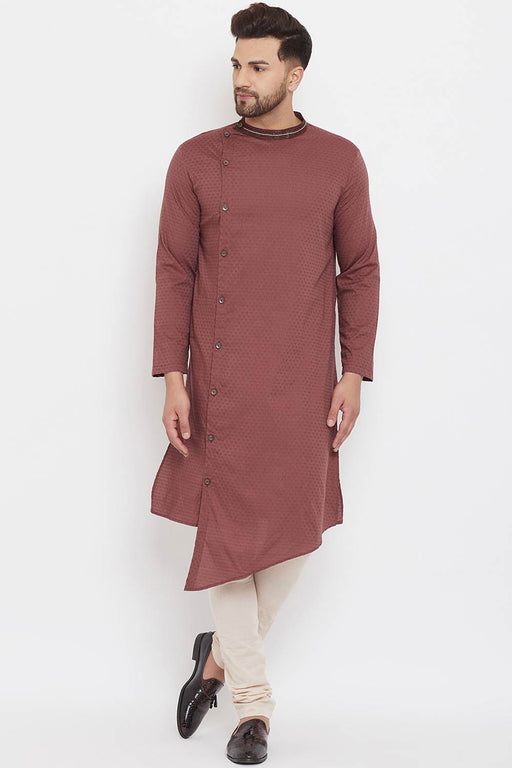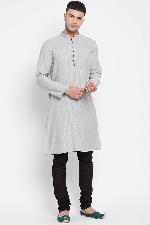 Men's Rayon Solid Long Kurta Top In Light Cream