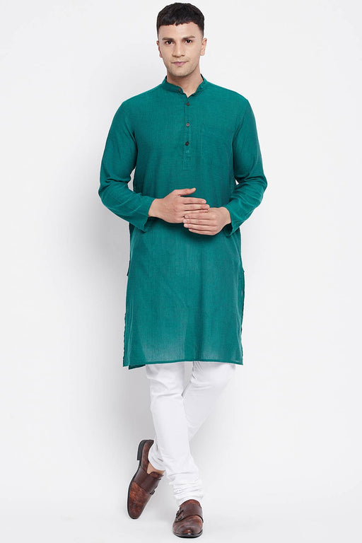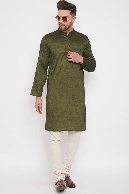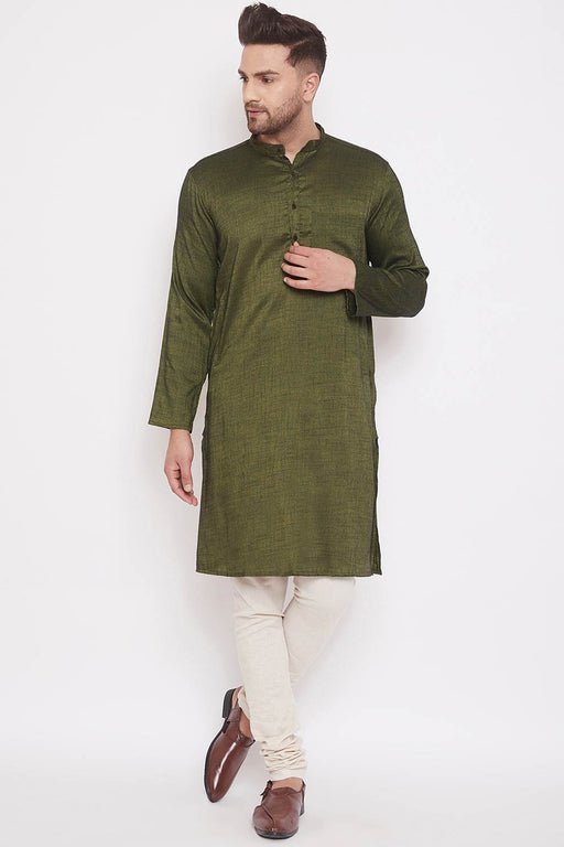 Men's Rayon Solid Sherwani Top Kurta Top In Dark Green