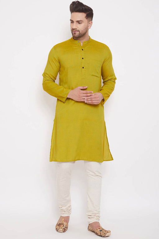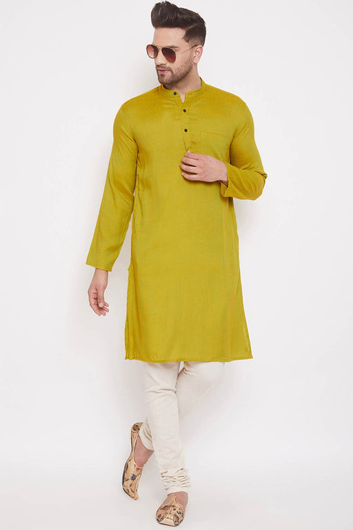 Men's Rayon Solid Long Kurta Top In Light Yellow