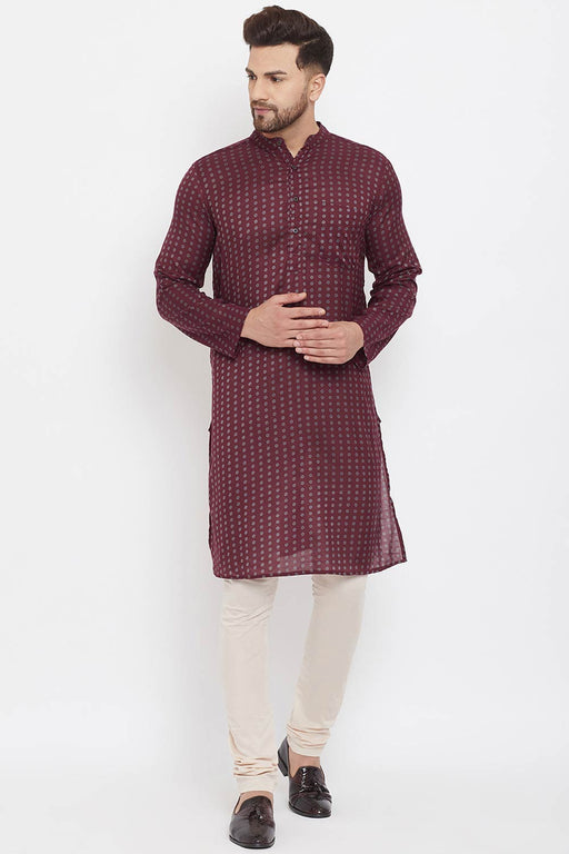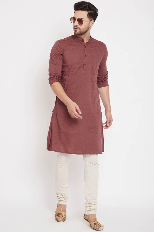 Men's Light White Solid Full Sleeve Long Kurta Top