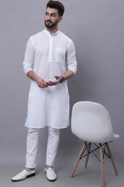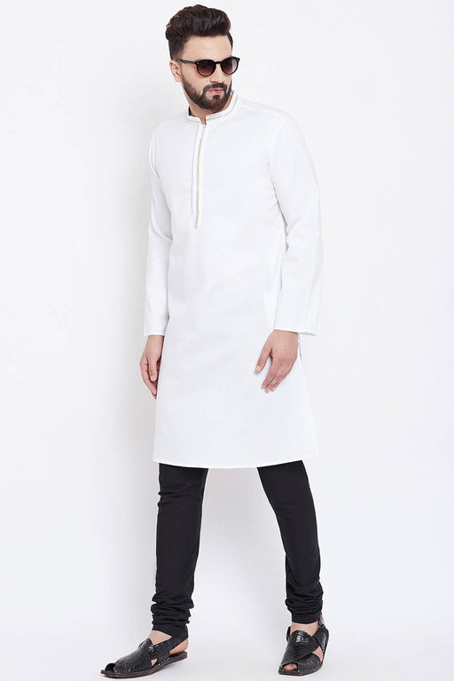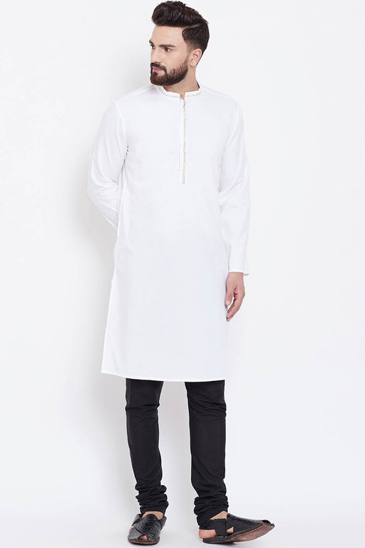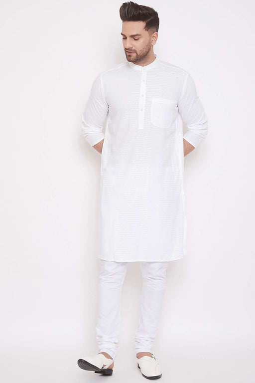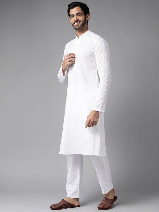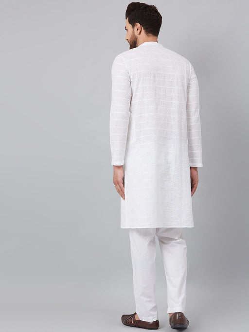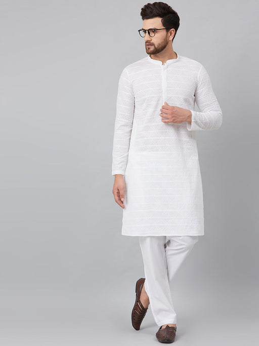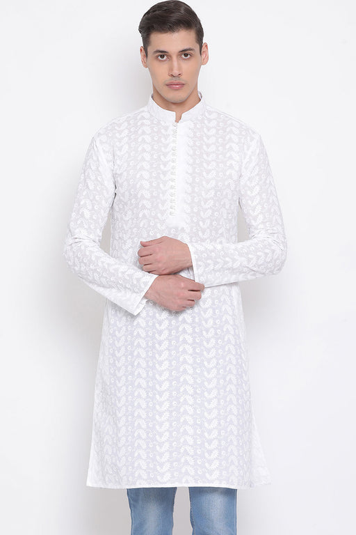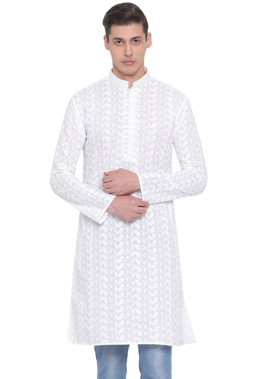 Men's White Cotton Chikankari Embroidered Straight Kurta Top