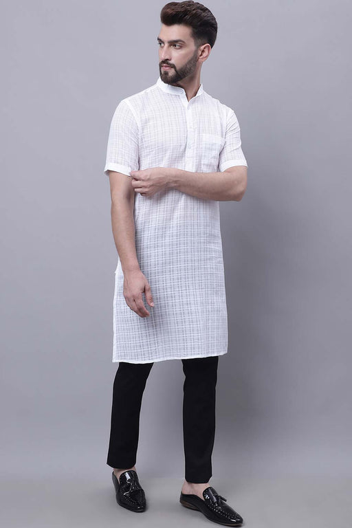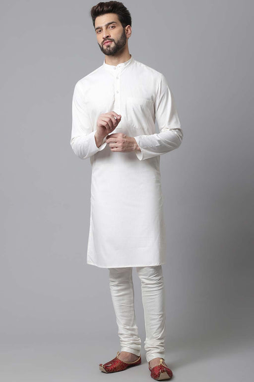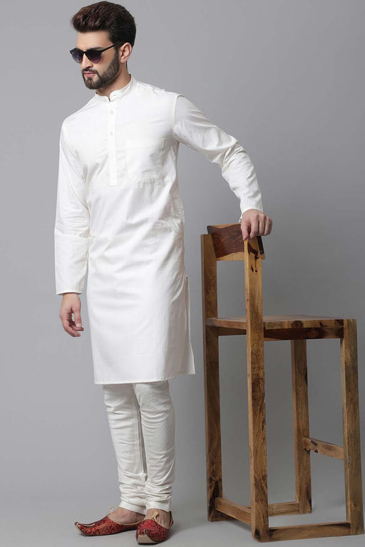 Sale price $129.00 USD Regular price $154.00Unit price /Unavailable Men's Pure Cotton Stripe Print Sherwani Top Kurta Top In Light White