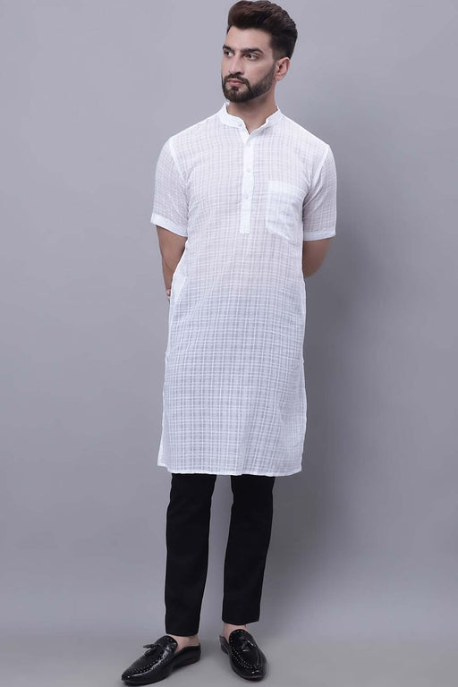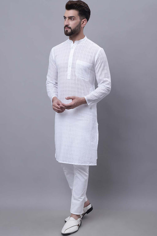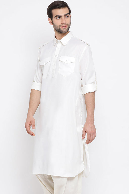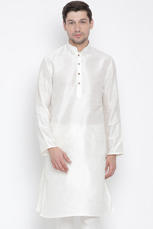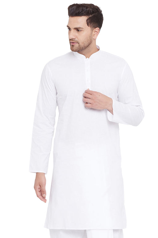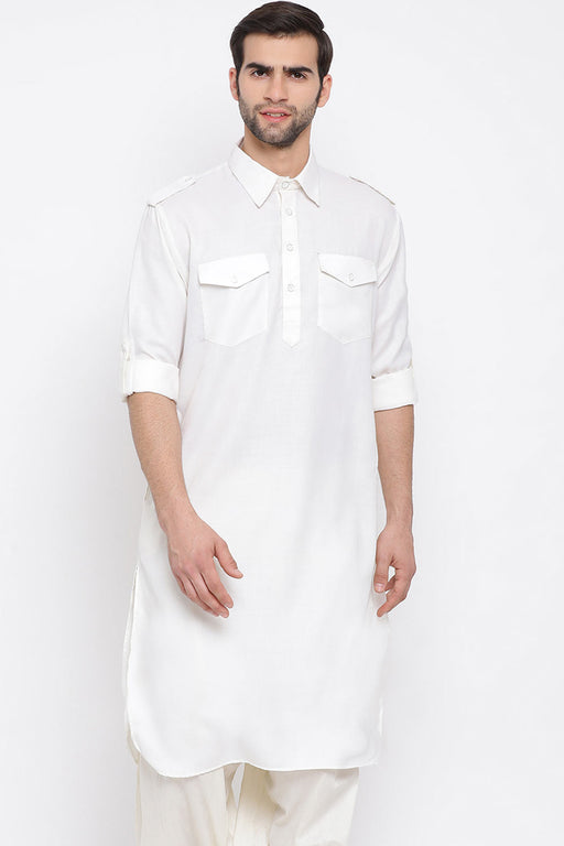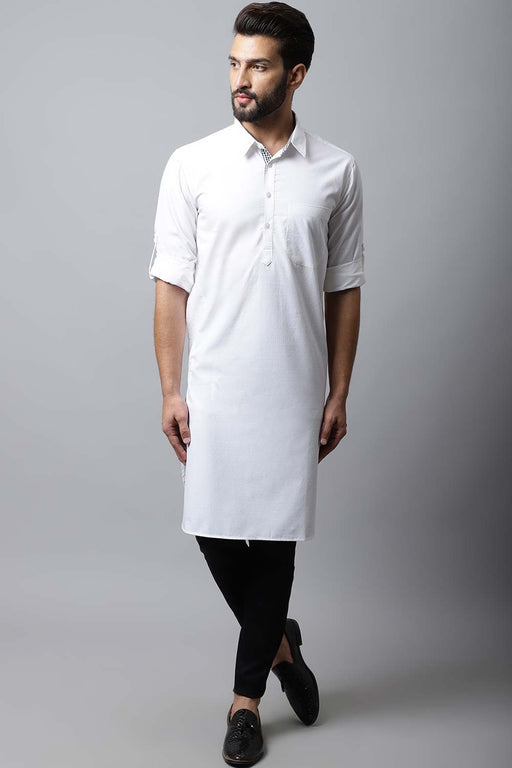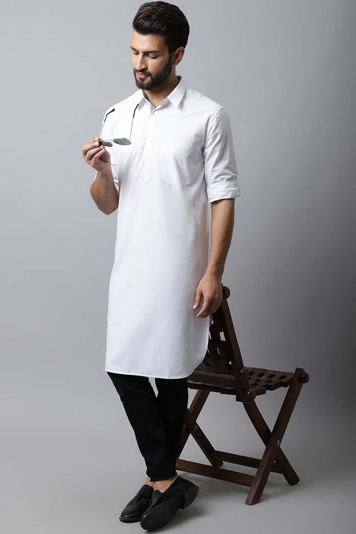 Men's Light White Solid Full Sleeve Long Kurta Top