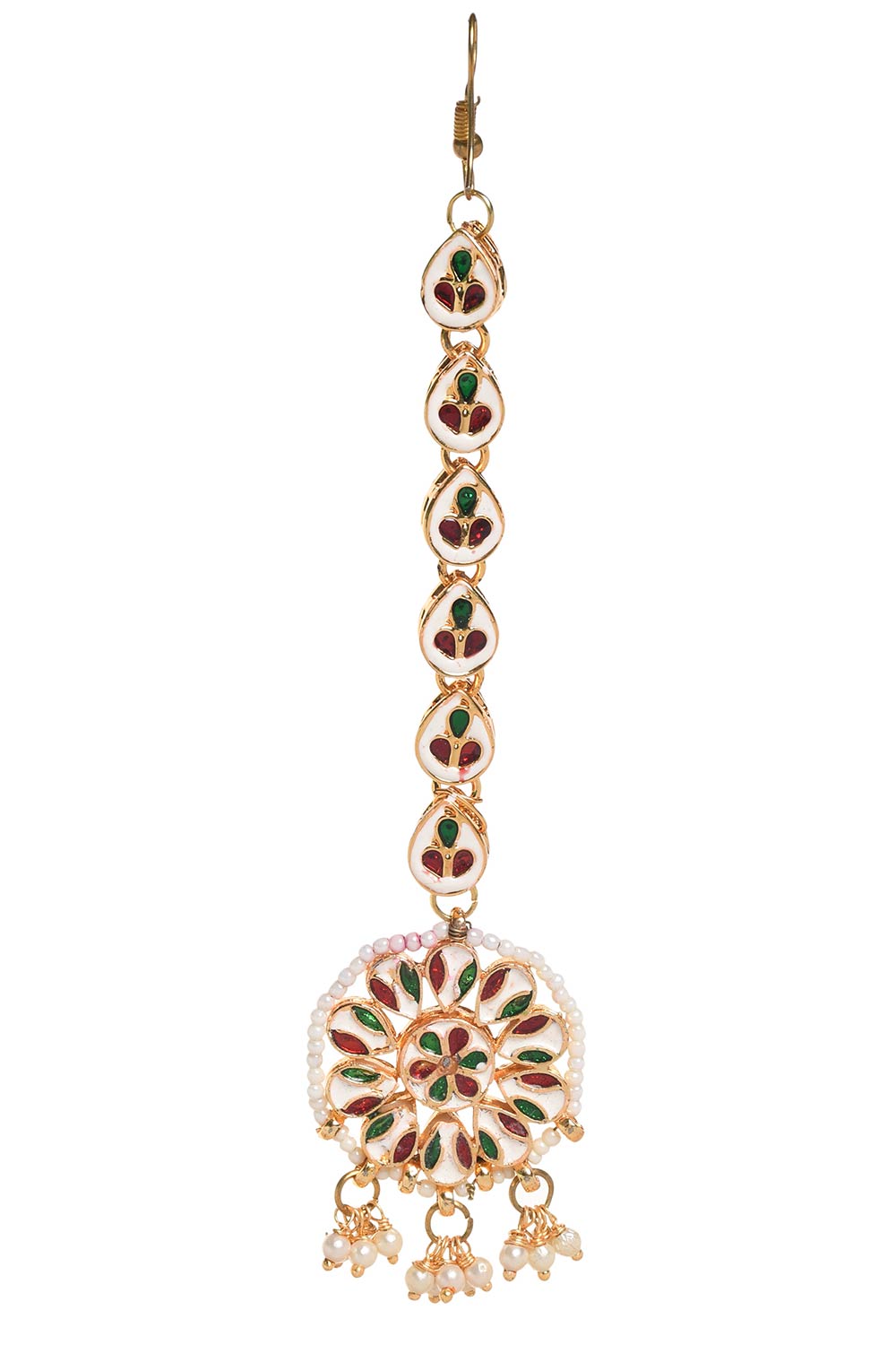 Product Features:- Color: Gold Tone Kundan Maang Tikka with Pearls