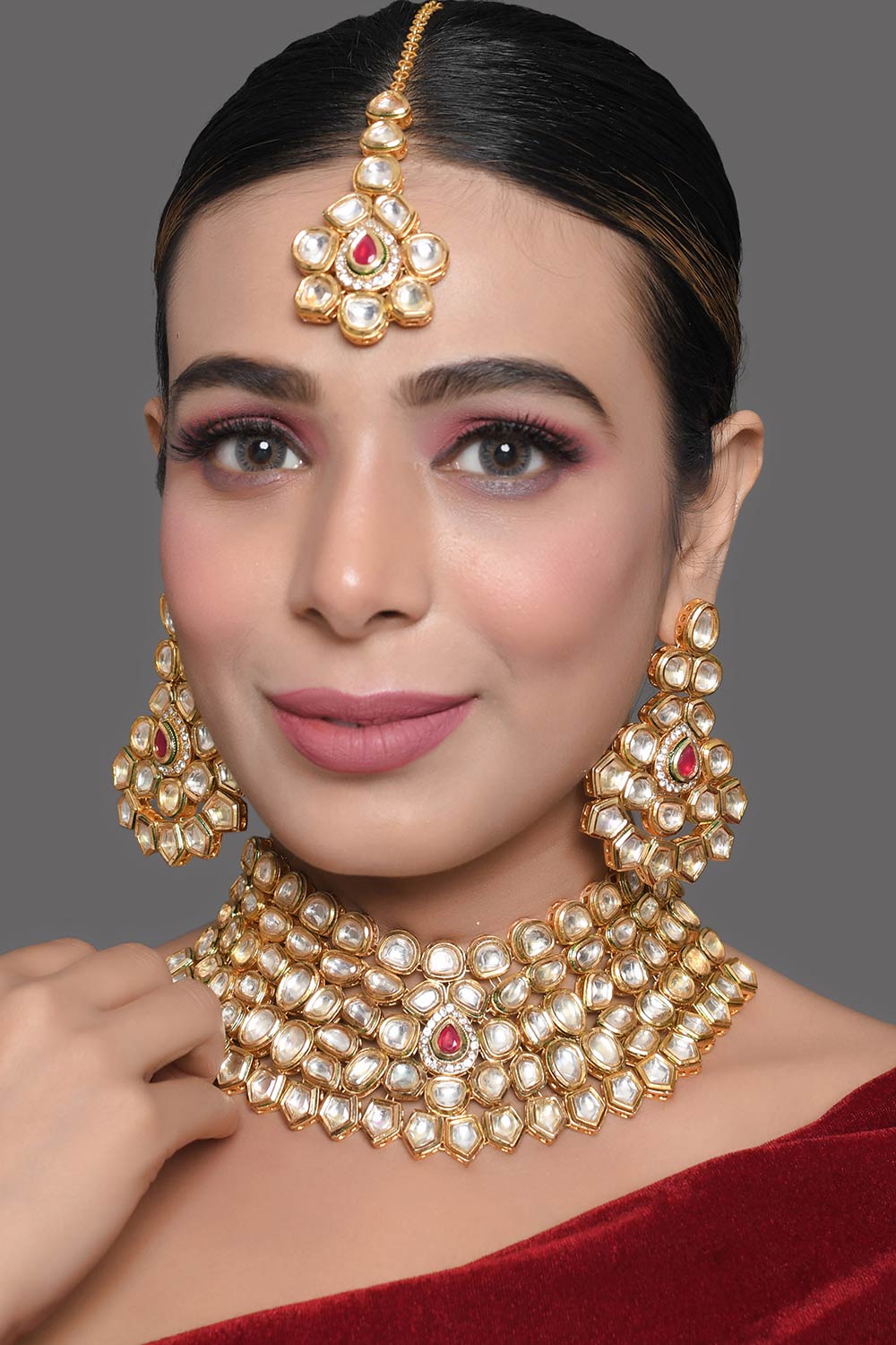 Product Features:- Color: Handcrafted maharani Kundan necklace with earrings & mang tika