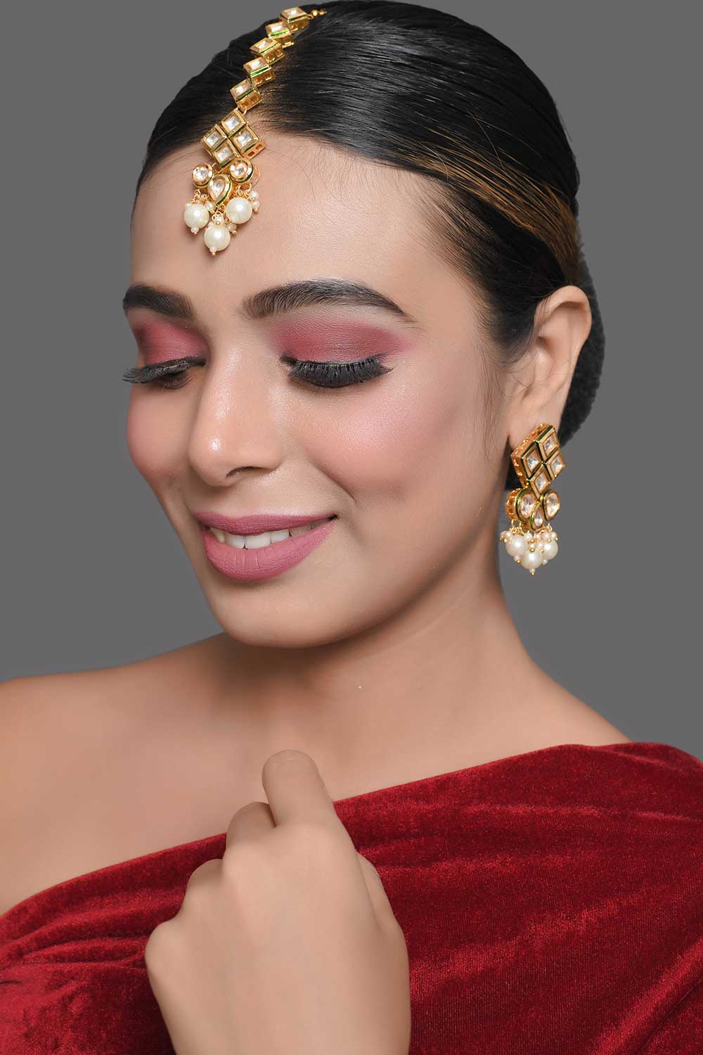 • Color: Pearl beaded kundan inspired earring & mang tika set