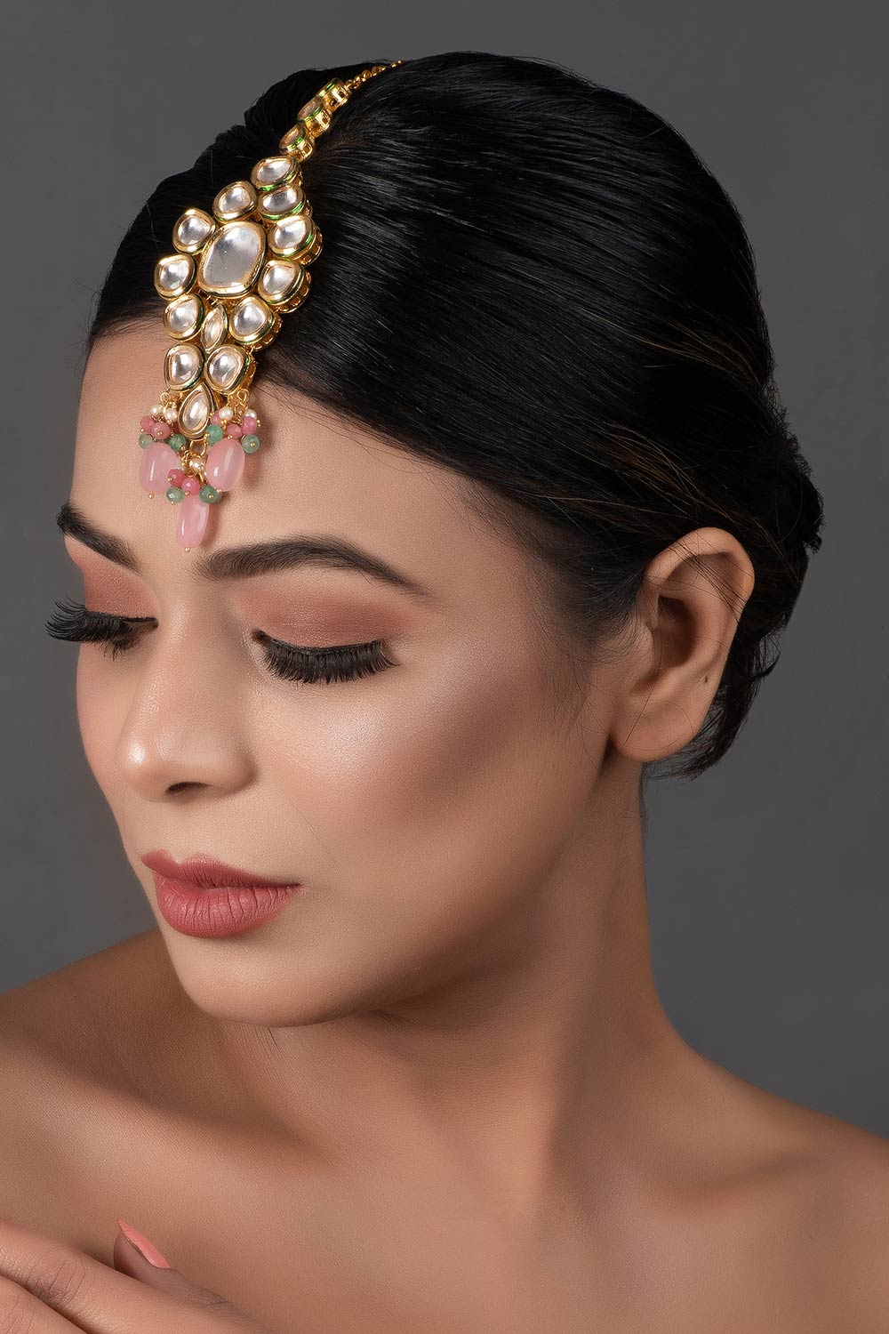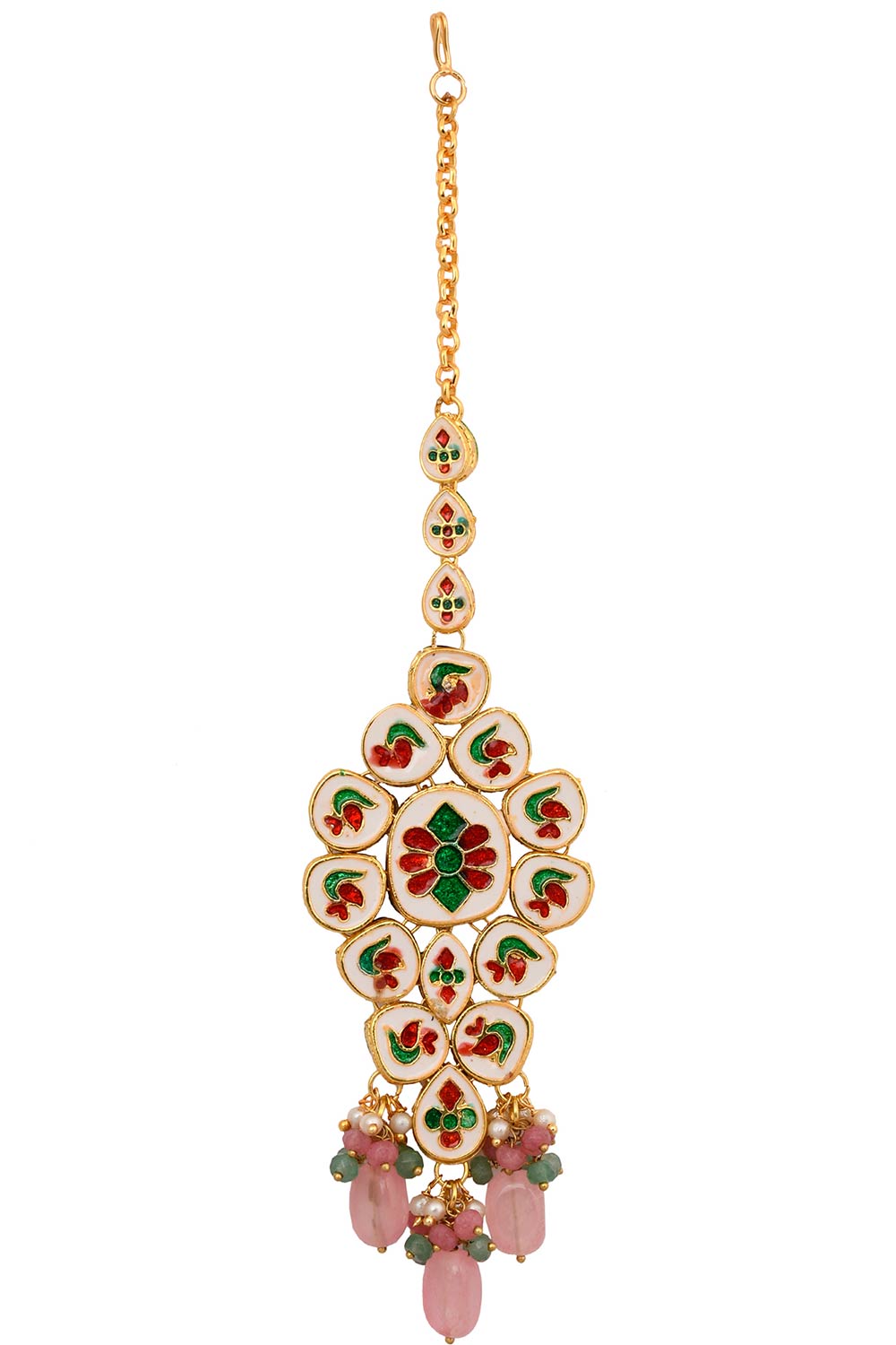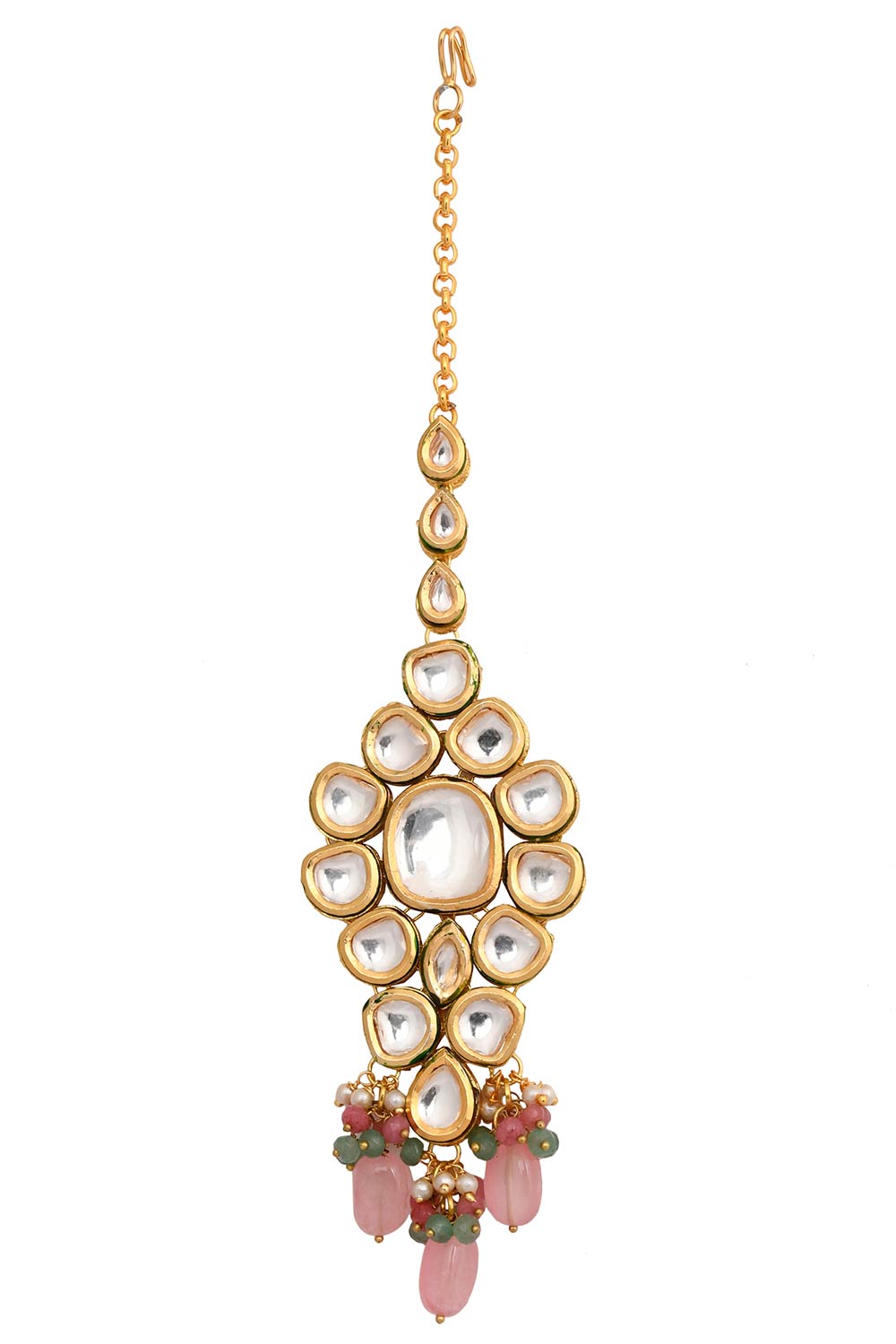 • Color: Pink Beaded Gold Tone Kundan Handcrafted Mang Tikka