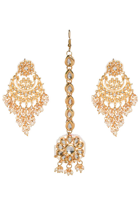 Handcrafted Kundan Studded Gold Toned Earring And Mang Tikka Set