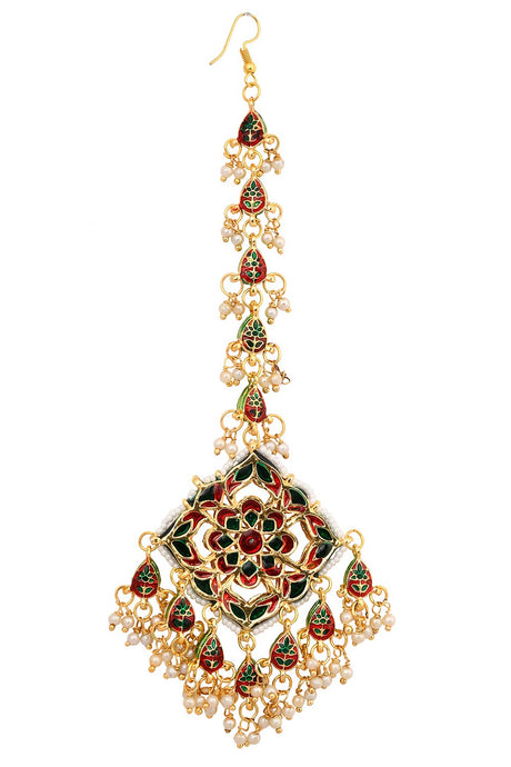Jade Gold Tone Kundan Maang Tikka With Pearls