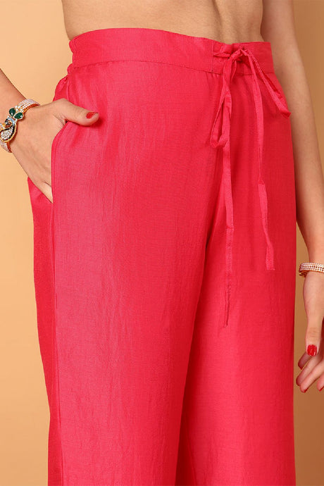 Pink Silk Blend Solid Embroidered Flared Anarkali Suit Set